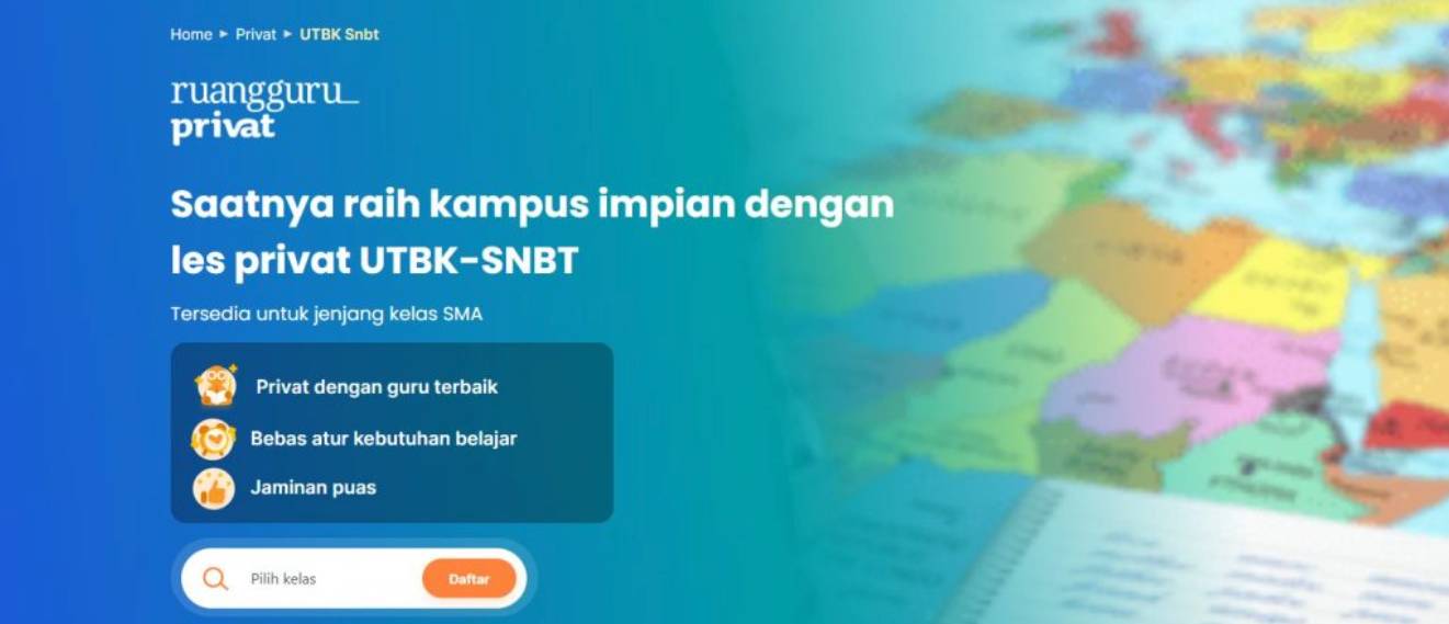Ruangguru adalah perusahaan penyedia layanan dan konten pendidikan berbasis teknologi yang dapat diakses secara mudah oleh masyarakat di seluruh Indonesia. Ruangguru juga dikenal sebagai lembaga bimbingan belajar yang membantu proses belajarmu menjadi lebih efektif, salah satunya menyediakan layanan Les Privat Matematika Khusus UTBK SNBT.